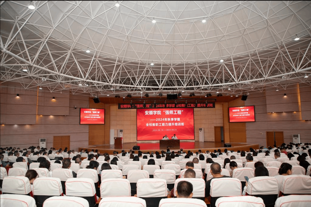 2024年8月19日,安顺学院“强师工程”——2024年秋季学期全校教职工能力提升培训在学术报告厅开班,安顺学院党委书记罗荣彬在讲话中指出,此次培训旨在全面学习贯彻党的二十届三中全会精神及习近平总书记关于教育的重要论述,努力建设一支政治素质过硬、业务能力精湛、育人水平高超的高素质专业化创新型高校教师队伍。