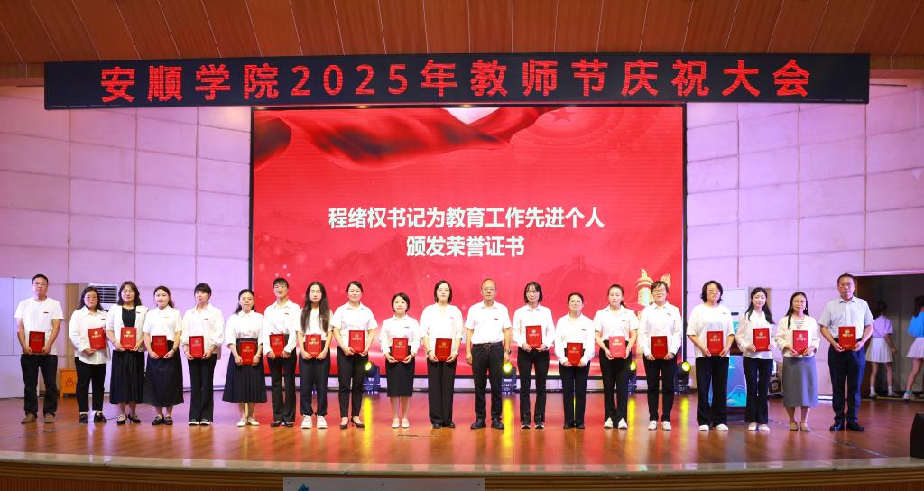 为表彰先进,弘扬教育家精神,加强教师队伍建设,激励教师的光荣感、责任感和使命感,9月10日下午,安顺学院2025年教师节庆祝大会在学术报告厅举行。校党委委员、校领导,全体教职工、学生代表参加。庆祝大会由安顺学院党委委员、副校长殷红敏主持。